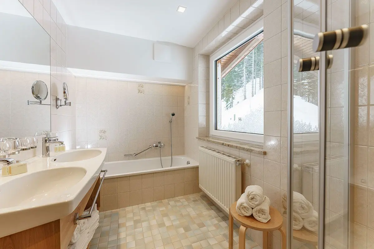 - bathroom with double washbasin,